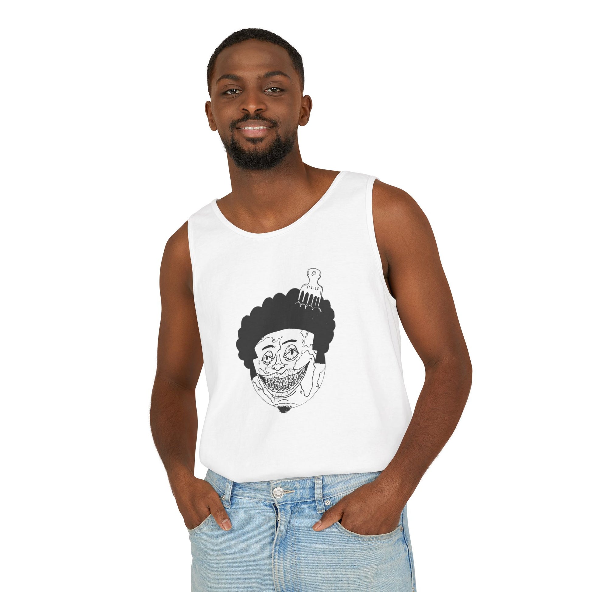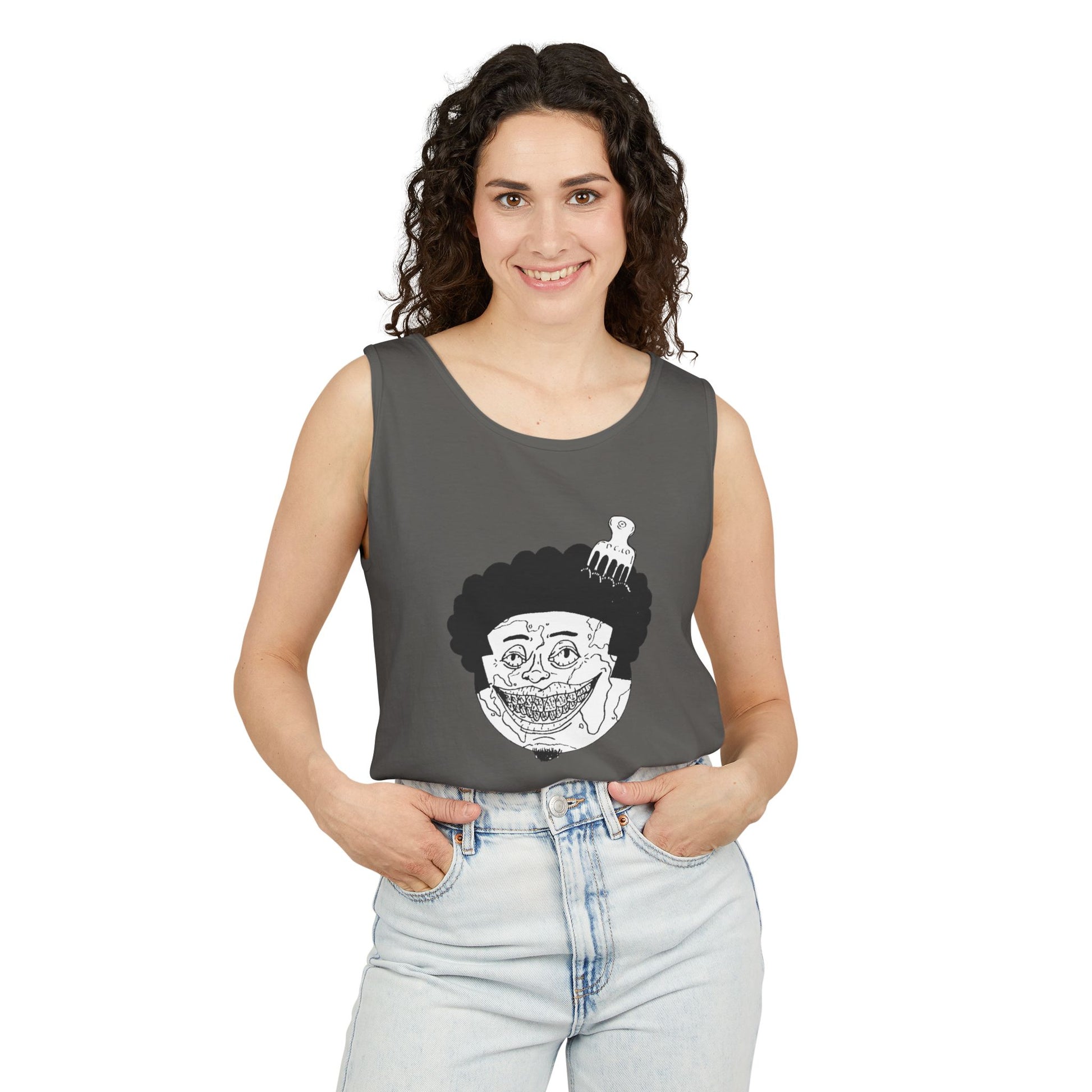 Tank Top with Afro Mane, perfect for casual wear with a relaxed fit. This unique design adds a stylish touch to your outfit, perfect for individuals who embrace their natural hair. Ideal for summer, music festivals, and casual gatherings.