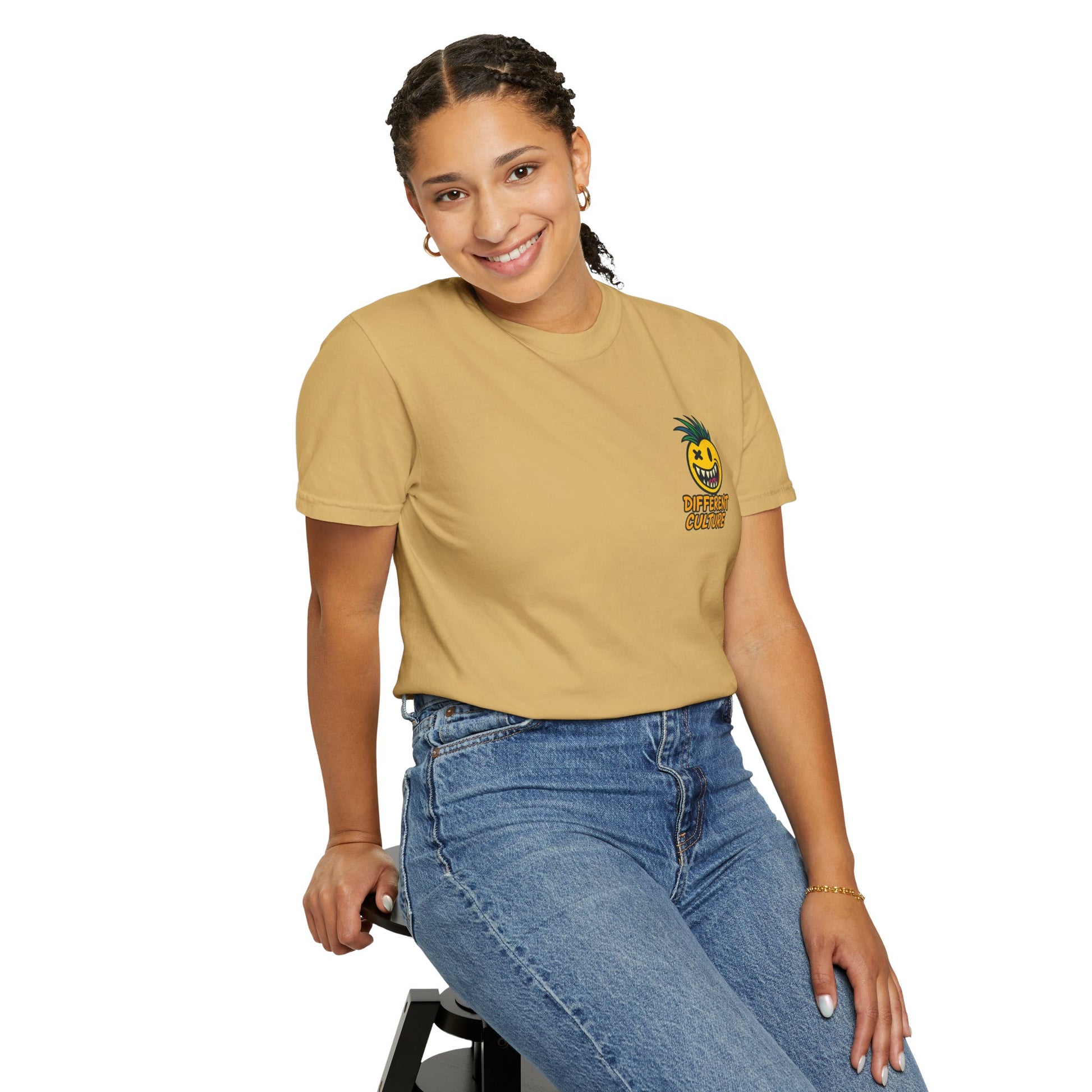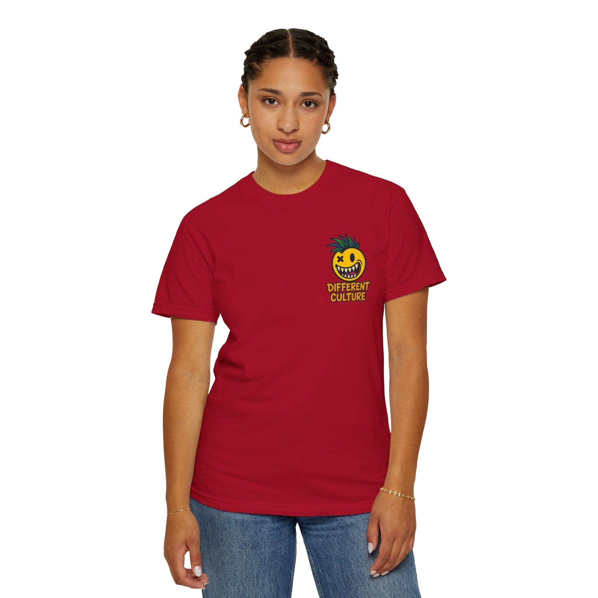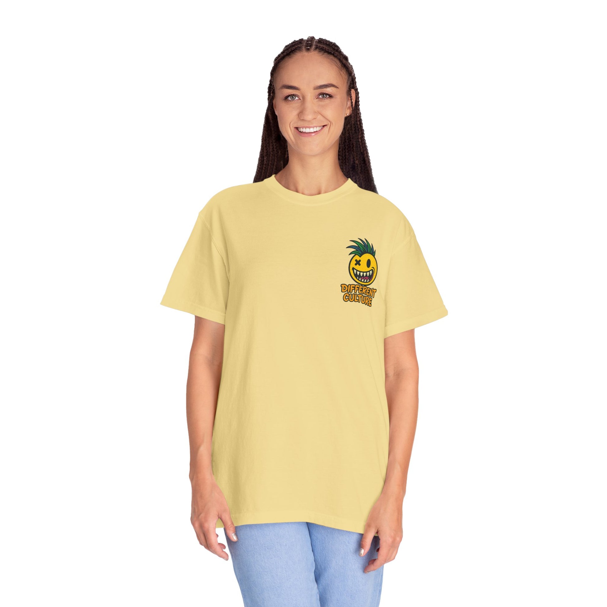 The Different Culture Pina Smiley Tee is a unique and stylish garment-dyed t-shirt that exudes a fun and positive vibe. Perfect for those who appreciate diverse cultures and love to express themselves through fashion. Ideal for casual wear or as a statement piece for those who want to stand out. Great for fashion-forward individuals looking to celebrate diversity and spread joy.